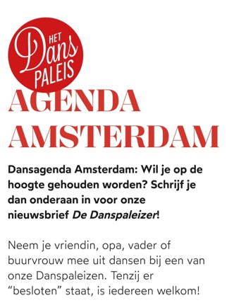 Zin in dansen kijk eens op de agenda van het Danspaleis! Op 12 jan in de brasserie bij de schaatsbaan museumplein!